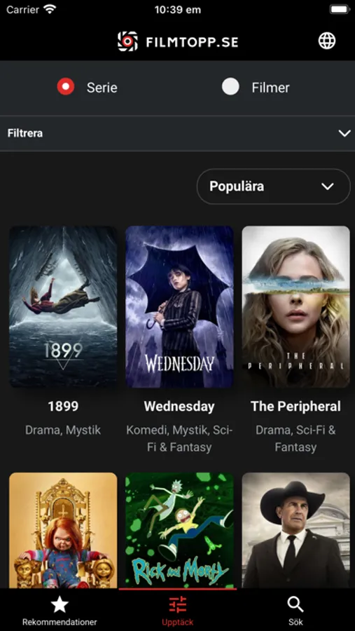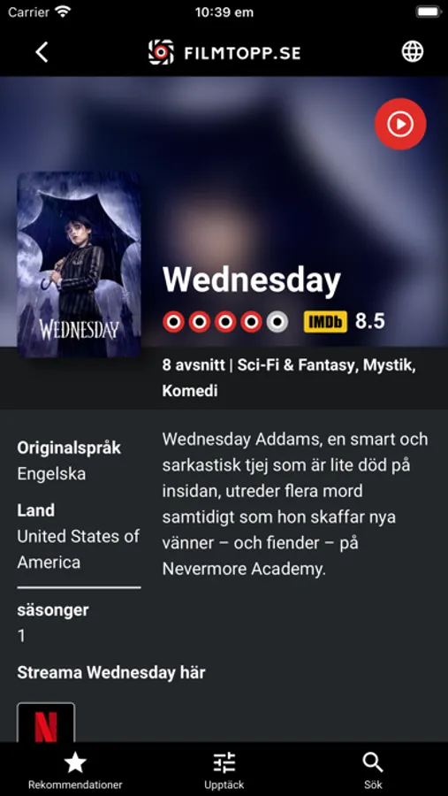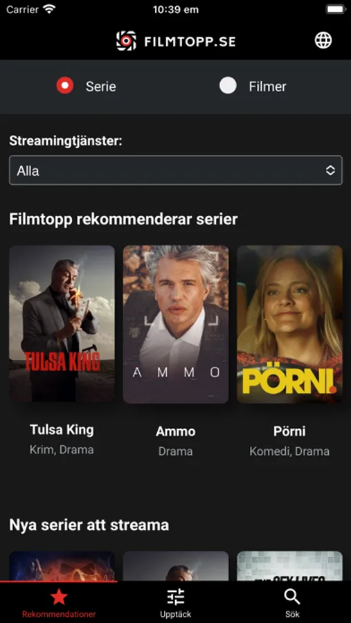 With Sweden's leading streaming editorial office, we've stuffed this application with all the thinkable info you need to release your inner nerd. Navigate all your streaming services at once and get custom-tailored movie- and TV recommendations. We've everything from ALL streaming services in the same place.