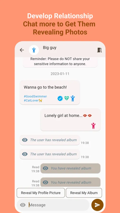 Chat with hidden identities, don't let preconceived attitudes affect your new relationship. Feel free to start a new conversation anytime, anywhere without any burden. If you want to go one step further, you can reveal photos to build an equal relationship and trust to share with each other.