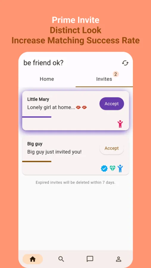 Take the advantage of the unique Prime Invite system and a variety of background images and colors to increase the success rate of matching