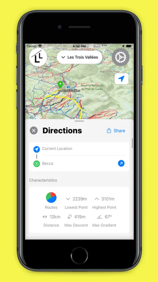 Don’t fancy doing the black runs today? Get bored on the greens? You can easily toggle the different difficulties on and off, so that the navigation tool will know which pistes to avoid when calculating the best route for you?