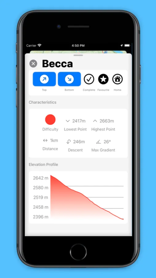You can tick off every piste you complete, and see how much of the resort you’ve covered. Then when you navigate via a new route, you can see if you’ve completed any of it before, or if its totally new. Race to get to 100% anyone?