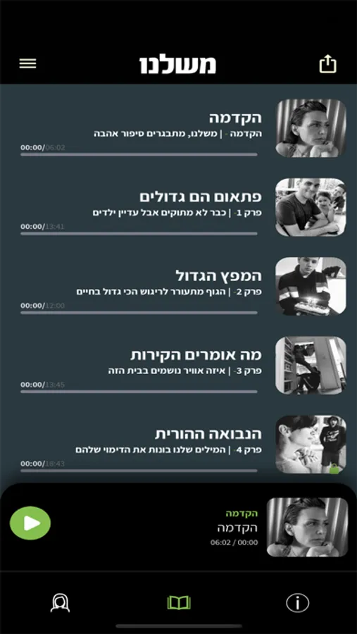 גרסת אודיו של רב המכר "משלנו - מתבגרים סיפור אהבה" שכתבה ומקריאה מדריכת ההורים עינת נתן, הספר האישי-מקצועי שנגע בעשרות אלפי קוראים, ועזר להם לעדכן גרסה בהורות שלהם לילדים מתבגרים במטרה לשפר את היחסים בבית.