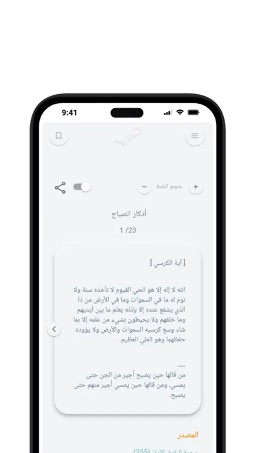 أدعية وأذكار من صحيح السنة النبوية، مع مزايا متعددة أهمها الانتقال التلقائي بين الصفحات.