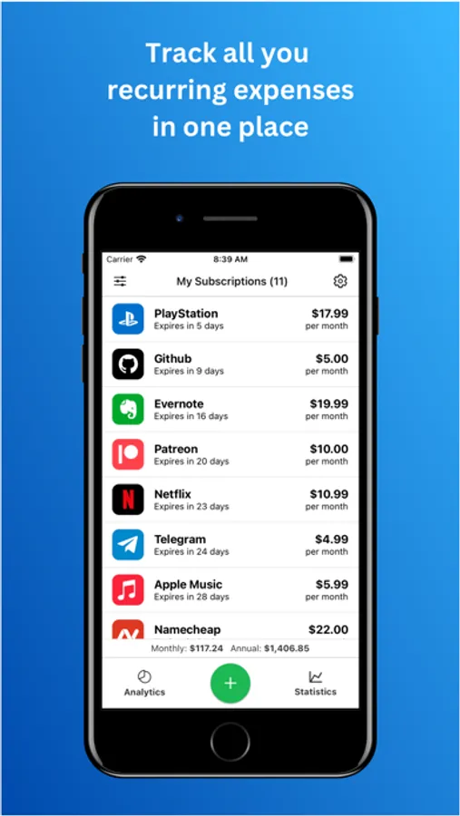 TRACK ALL YOUR RECURRING EXPENSES IN ONE PLACE