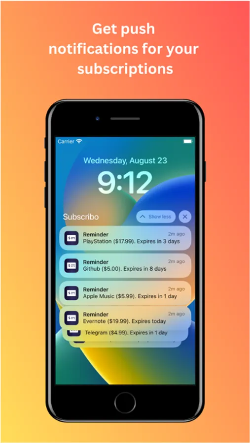 Stay ahead of your subscriptions with instant push notifications. Get alerted to upcoming payments, ensuring you're always in control of your financial commitments.