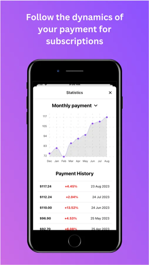 Track the dynamics of your subscription payments effortlessly. Stay informed about payment trends and gain valuable insights into your expenses.