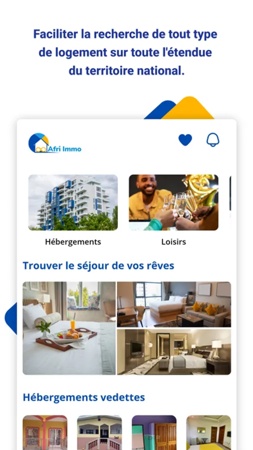 Afri Immo offre une panoplie d'Appartements Meublés Studios Meublés, et des loisirs. Nous faisons aussi la promotion des services immobiliers et transport urbain par voiture.