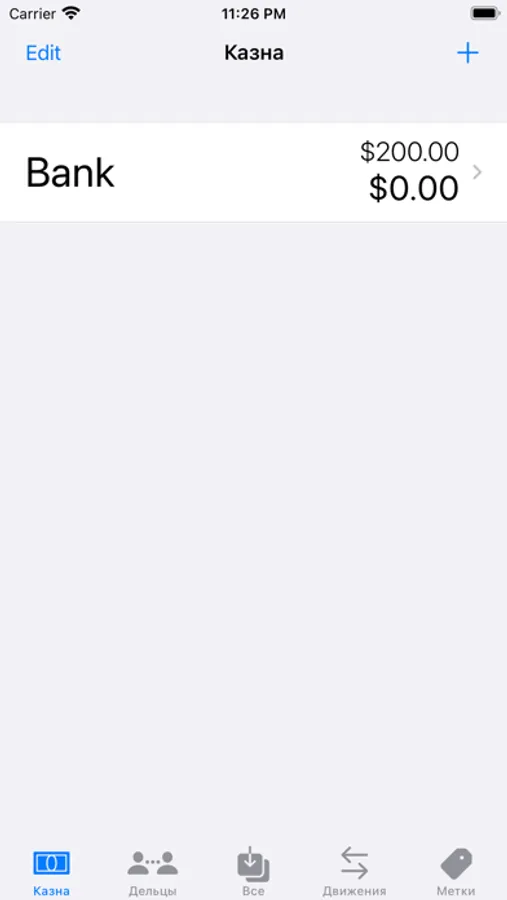 - Казной с возможной группировкой по банкам