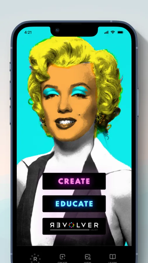 The Revolver Gallery Screenprinter app lets you turn any photo into a vintage silkscreen masterpiece. Inspired by the Pop Art of Andy Warhol, our app guides you through the silk screening process from start to finish using an image of your choice. You’ll use easy screen printing techniques to customize the color, outlines, and texture of your portrait to get the exact look and feel you want. Once you’ve pulled the screen to reveal your final artwork, share it on social media and tag Revolver Gallery so we can see!