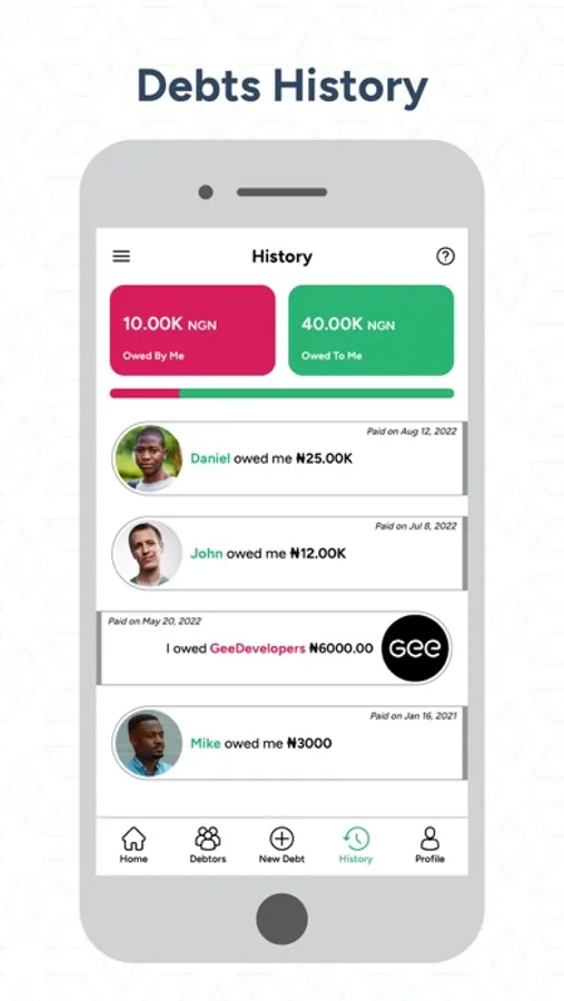 Debt and Debtor History: Save and access detailed records of debtors and their respective debts.