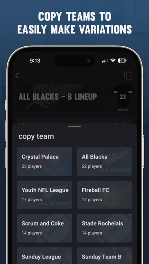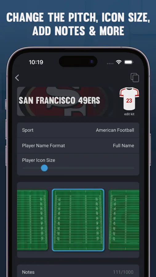 - Add notes to each team and automatically include them when you share your lineup within the app