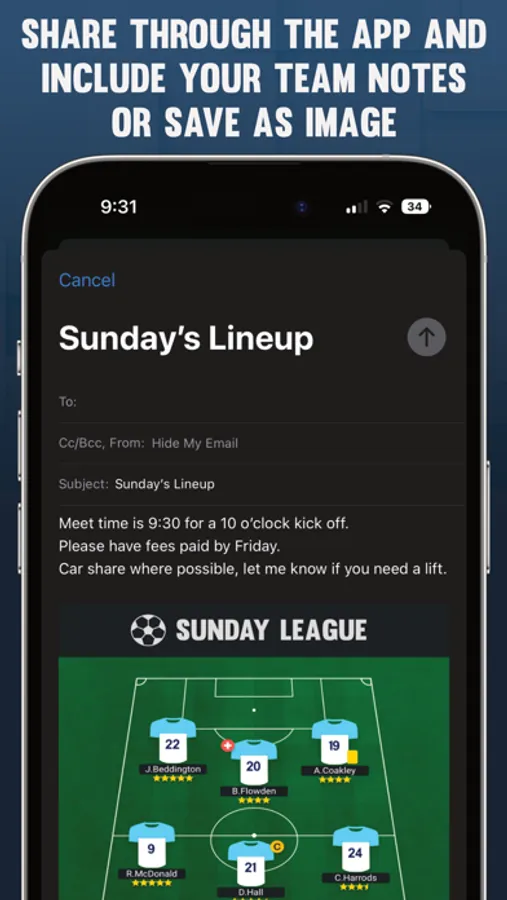 - Save your lineup as an image or share via email, iMessage, WhatsApp, X, Instagram, Facebook and more
