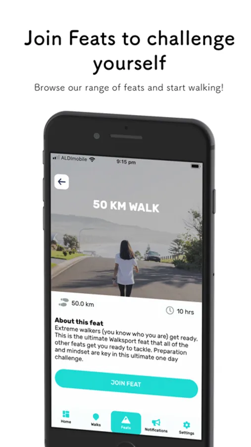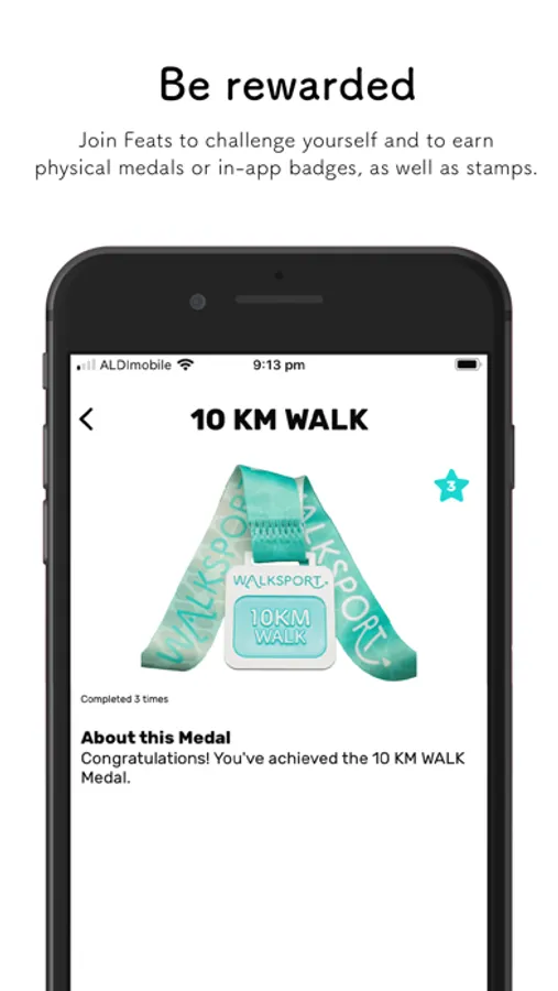 Join Feats to challenge yourself and to earn physical medals or in-app badges and stamps
