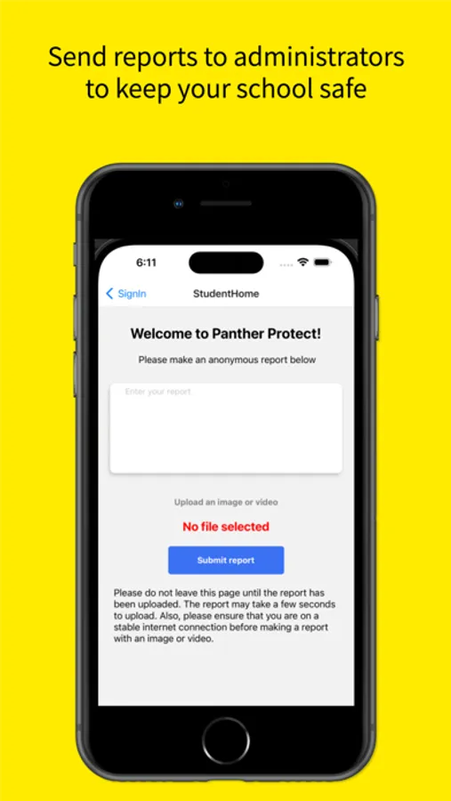 A safety application for Chattahoochee County Schools, allowing students to anonymously send reports to administrators.