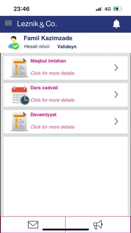 This application is for Leznik Co customers. The application users can see Leznik Co courses, lesson schedules, their exam results and etc.