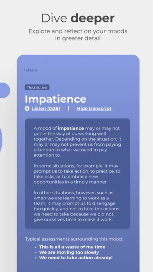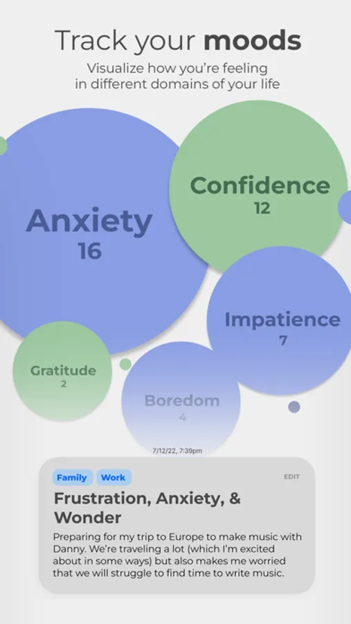With MoodNavigator, you’ll be able to go deeper than other surface-level mood tracking apps and really understand how your moods are influencing you, and what you can do to start influencing them.
