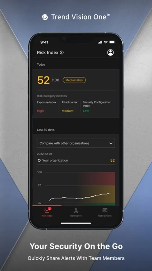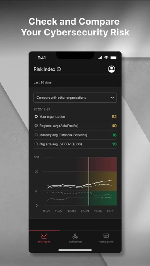 - Compare your risk index against the regional average, industry average, and other similar size organizations.
