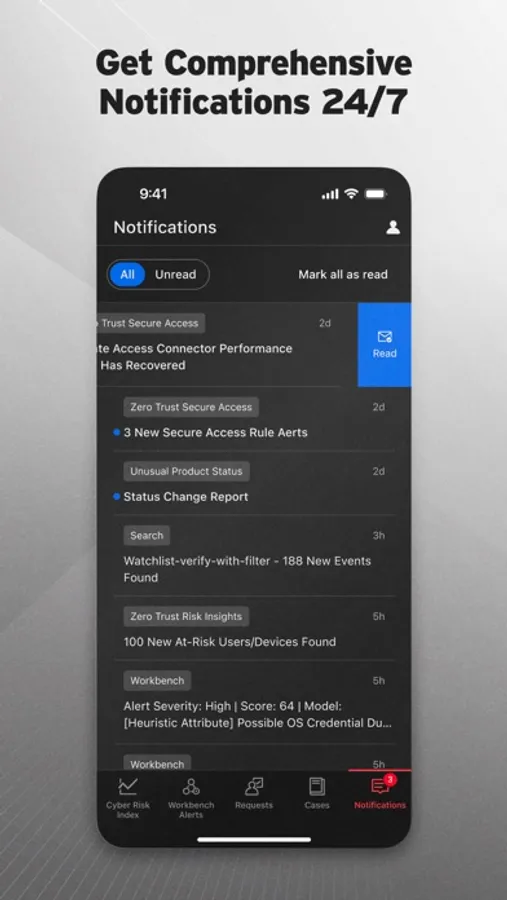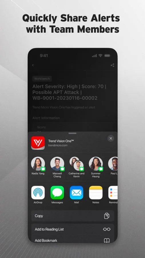The Trend Vision One web console provides advanced capabilities for detailed insights and response actions. This mobile app complements the console by enabling you to quickly triage, prioritize, and manage critical tasks with ease during an ongoing incident.