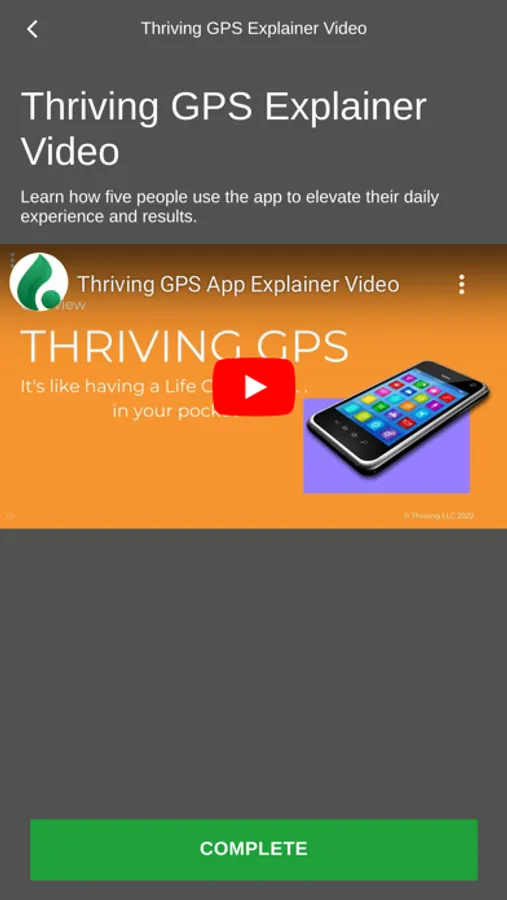 The Thriving GPS for Life app helps you train your brain to maintain a positive, empowered state of mind throughout your day.