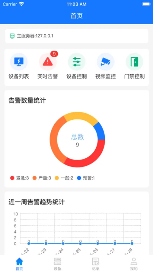 一款智能高效的应用于嵌入式管理的app,主要功能包括:实时告警、设备监控、设备控制、门禁控制、视频监控、告警记录、通知记录、门禁记录等功能。