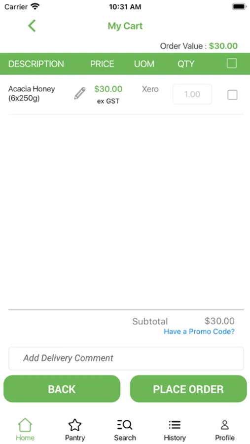 You can quickly and easily select your pantry lists, select the items you want and place an order in seconds. Use our pantry list, or create your very own. We’ve also included the convenience of re-ordering from your previous orders.