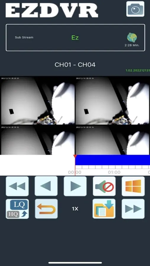 EZDVR is a H.264+H.265 DVR remote viewer. It can be viewed in non-landscape or landscape mode after filling in IP, port, username, and password.