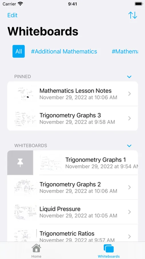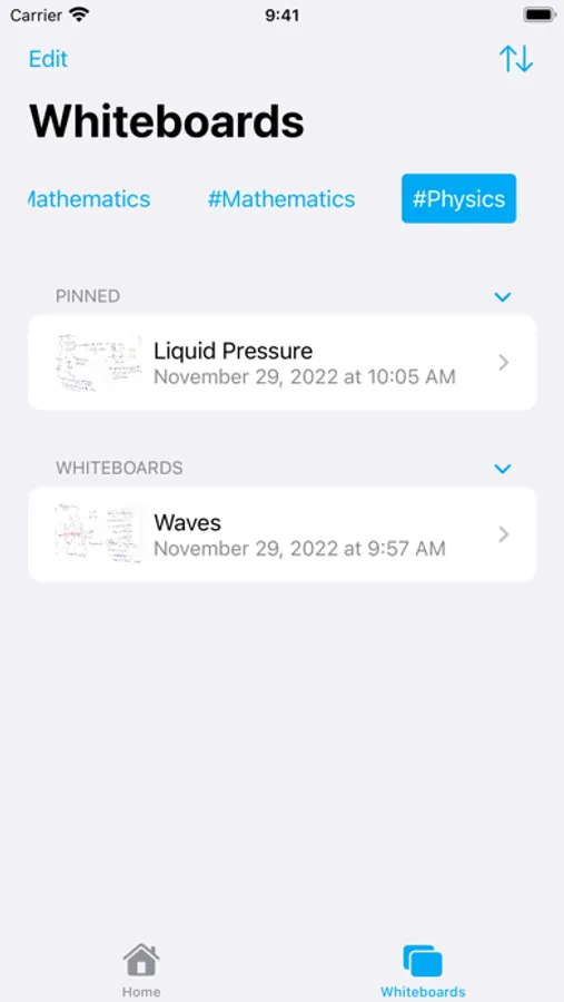 - Advanced Sorting: Sort by Date, Alphabetically, or add multiple Tags to Whiteboards, to easily find your Whiteboard within seconds.