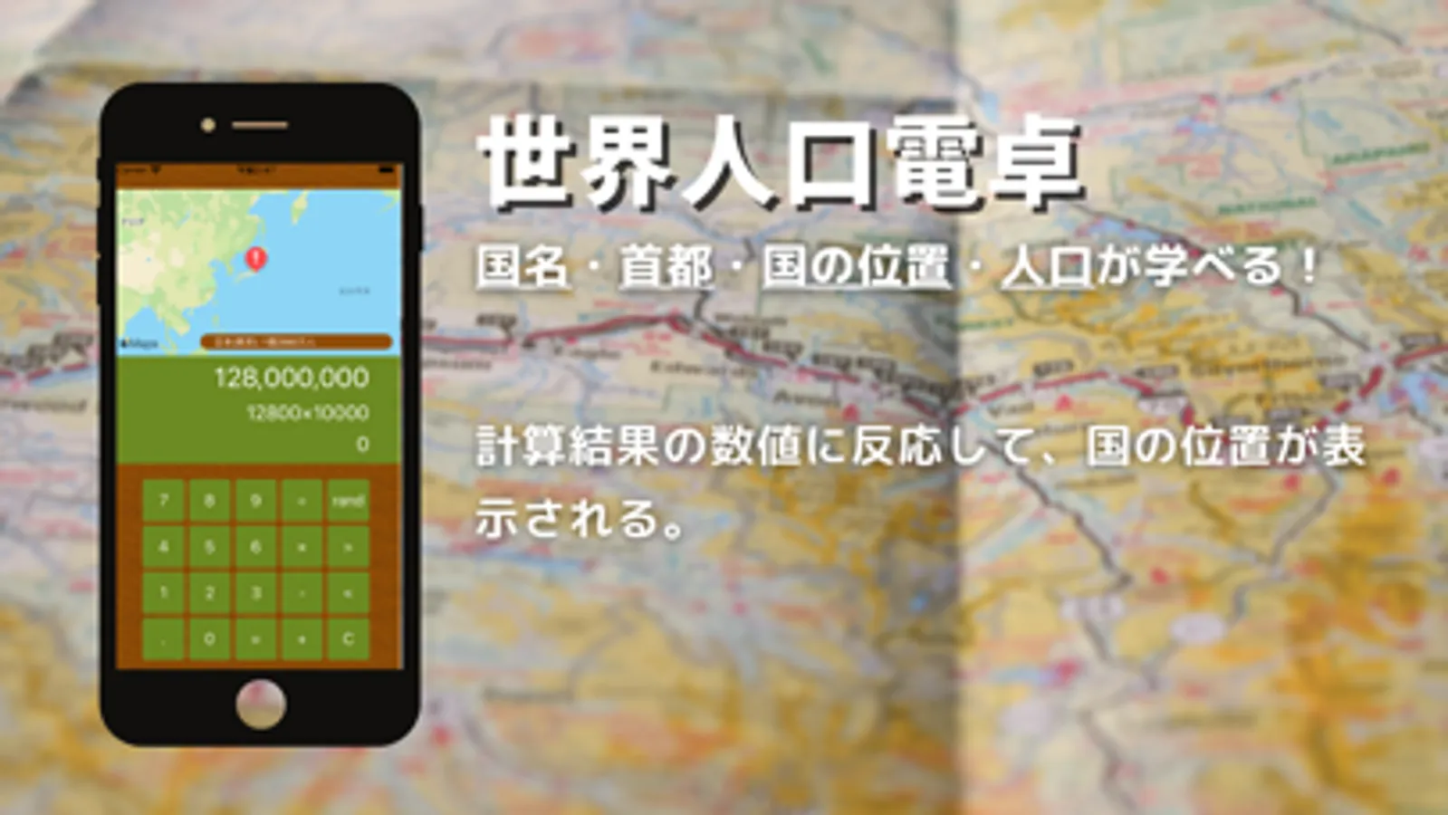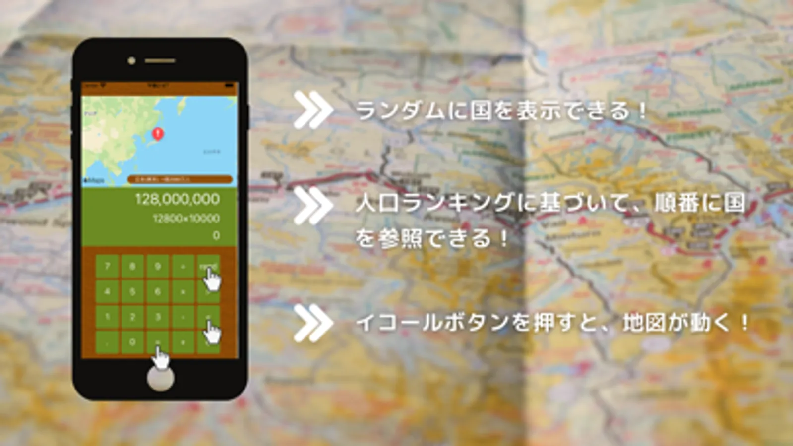 - 計算結果の数値に連動して、その数値に人口が近い国を地図上に示す。