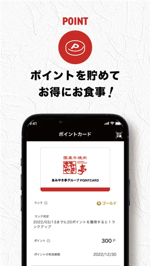 アプリをダウンロードしていただくとポイントカードが自動発行されます。