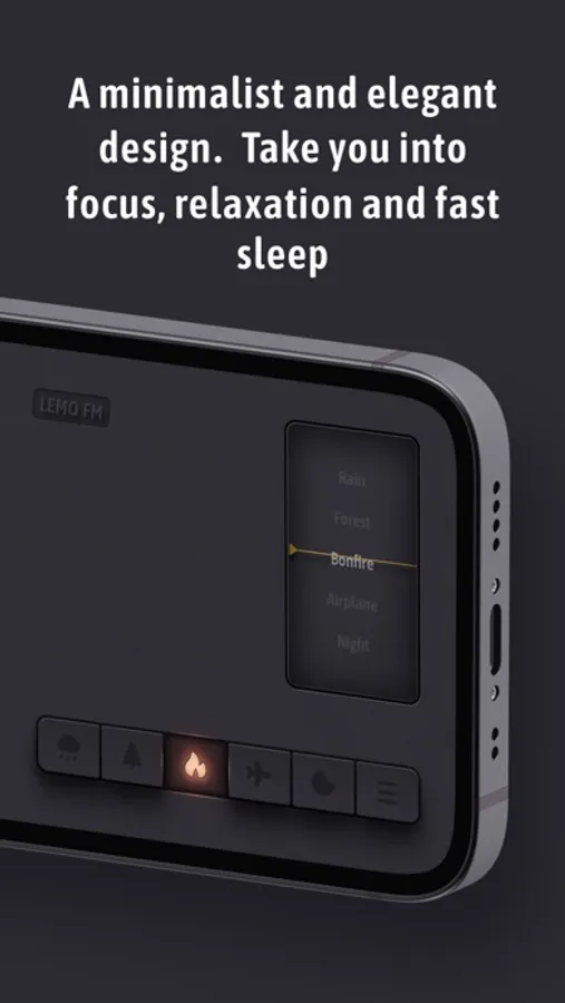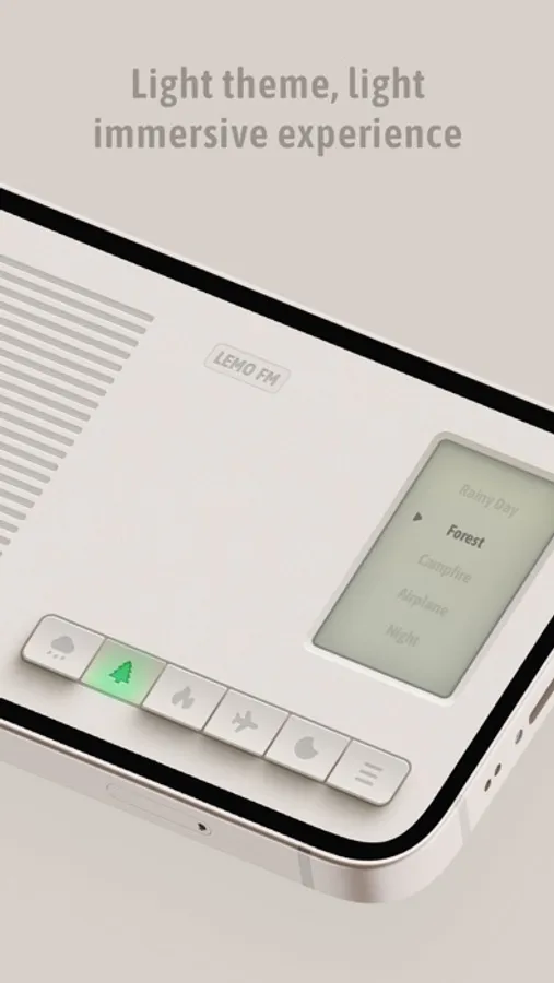 LEMO FM is an ultra-simple, elegant white noise App designed to help users achieve better sleep quality, resolve insomnia and anxiety issues and ultimately lead healthier lives. By playing high-definition natural sounds, it allows you to focus, relax, or fall asleep quickly, and achieve a healthier lifestyle and sleep. Under the philosophy of "Less is more," we designed LEMO FM. Its interface is a simple and elegant radio design. When your finger touches the radio button, natural sounds start playing, and the breathing light also starts to flash in and out. These carefully designed interactions allow you to start a journey of sound in a very ritualistic way.