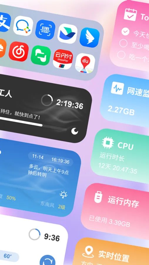 灵动小组件-桌面工具,包含了快捷启动,打工人,网速监控等功能