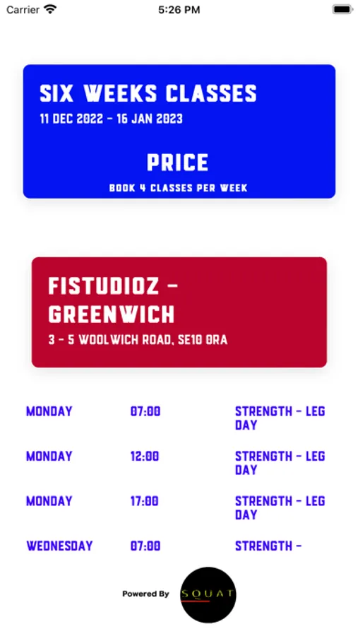 FITSTUDIOZ App that provides small personal training classes in locations across London.