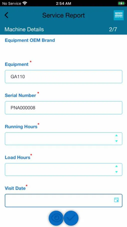 The app will be used for capturing all the technical parameters and updating checklists of machines in the service report.