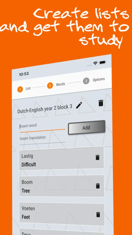 Create your own word or translations lists so that your child can learn the homework interactively and playfully.