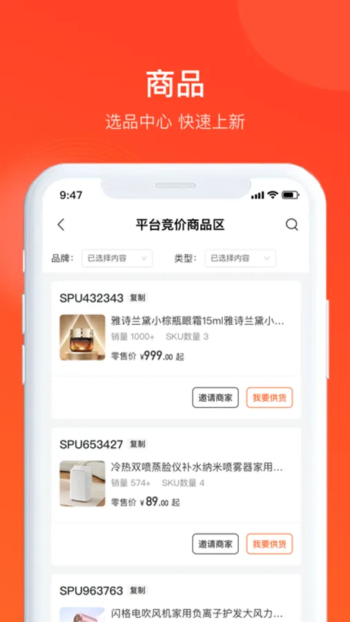 1、在这里,您将拥有一套全新竞价体系,无需自行填报商品,可直接选择平台商品一键竞价,更省时!