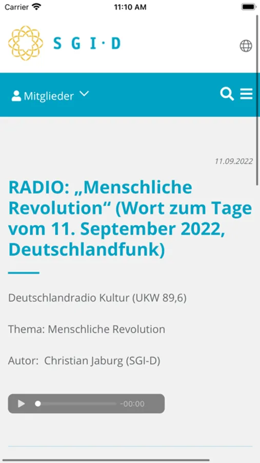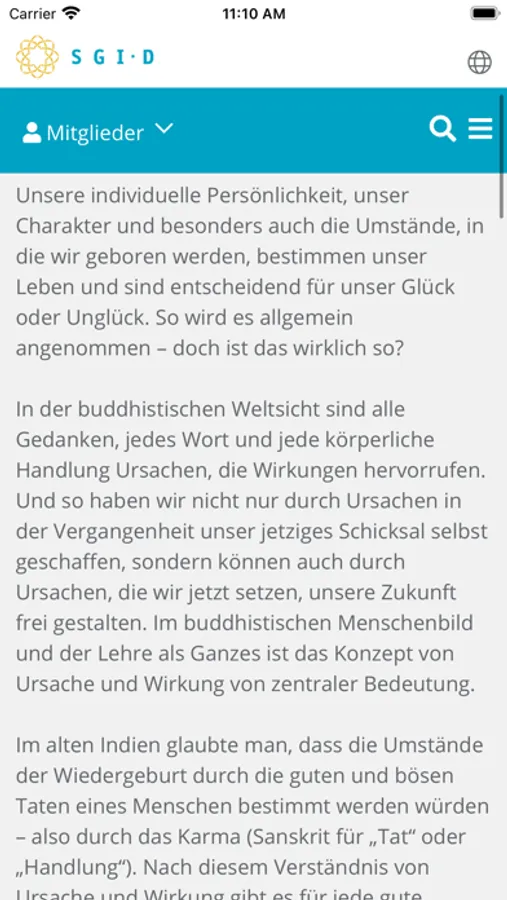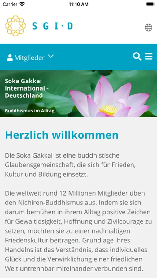 Die App enthält alle Inhalte der Webseite der Soka Gakkai International-Deutschland (SGI-D), mit den Rubriken „Über uns“, „Buddhismus“, „Aktuelles“ und einem Mitgliederbereich. Die Soka Gakkai ist eine buddhistische Glaubensgemeinschaft, die sich für Frieden, Kultur und Bildung einsetzt. Die weltweit rund 12 Millionen Mitglieder üben den Nichiren-Buddhismus aus. Indem sie sich darum bemühen in ihrem Alltag positive Zeichen für Gewaltlosigkeit, Hoffnung und Zivilcourage zu setzen, möchten sie zu einer nachhaltigen Friedenskultur beitragen. Grundlage ihres Handelns ist das Verständnis, dass individuelles Glück und die Verwirklichung einer friedlichen Welt untrennbar miteinander verbunden sind. Die SGI-Deutschland ist die deutsche Organisation der Soka Gakkai.