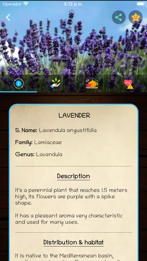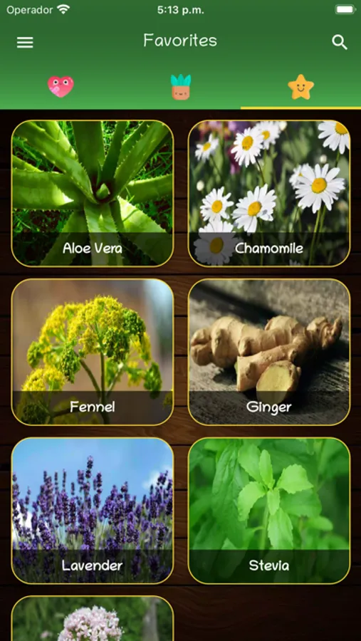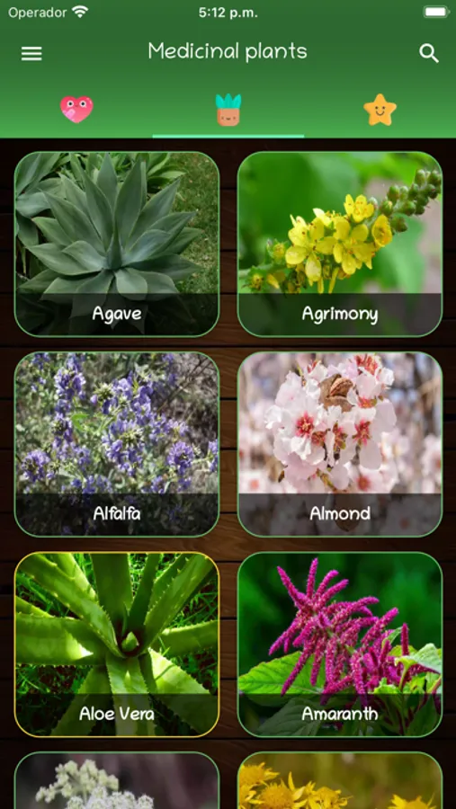 · Favorites: Third tab, in this section are saved your favorite medicinal plants so that you can access their information quickly and easily.