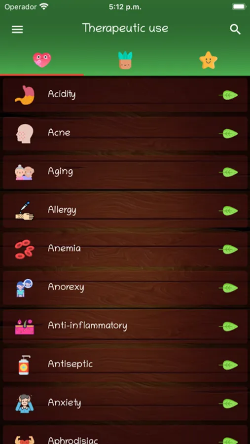 · Therapeutic uses: First tab of the app, here you can find a list of the most common therapeutic uses. Tap on a therapeutic use to access the most recommended medicinal plants to treat and alleviate these problems.