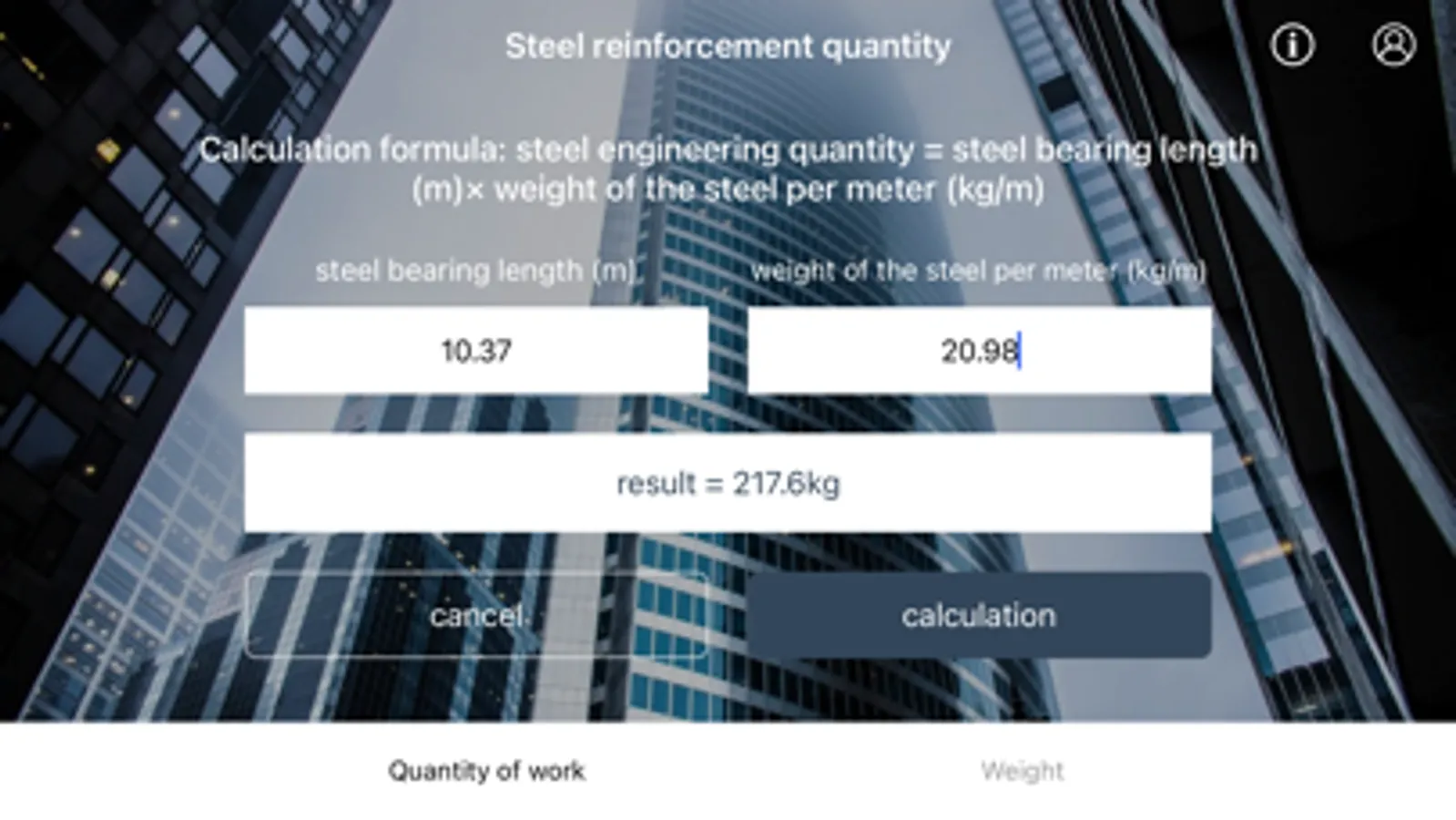 Using this application, users can easily input the size and design requirements of the building and select the appropriate types of concrete and rebar. As the information entered by the user is progressively completed, the application will automatically calculate the required amounts of concrete and rebar and display them on the screen. Additionally, the app provides charts and graphical interfaces to help users better understand the structure and construction of the building.