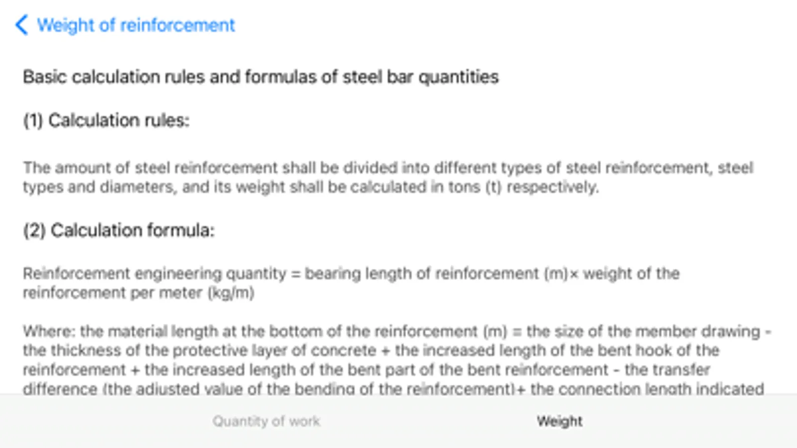 In addition to the features provided in the previous version, the new version of the app also includes an "Added Rebar Weight Calculation" function. With this function, users can easily calculate the weight and quantity of added rebar needed to ensure the structure and stability of the building are adequately considered.