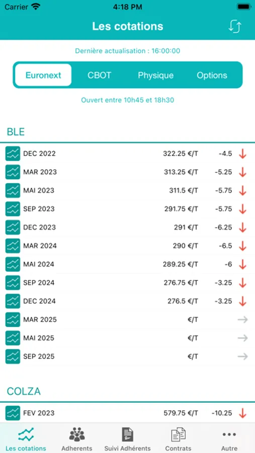 Dans votre application, et en complément de l’extranet www.easycoop.coop, retrouvez vos contrats, vos alertes ainsi que vos cotations.