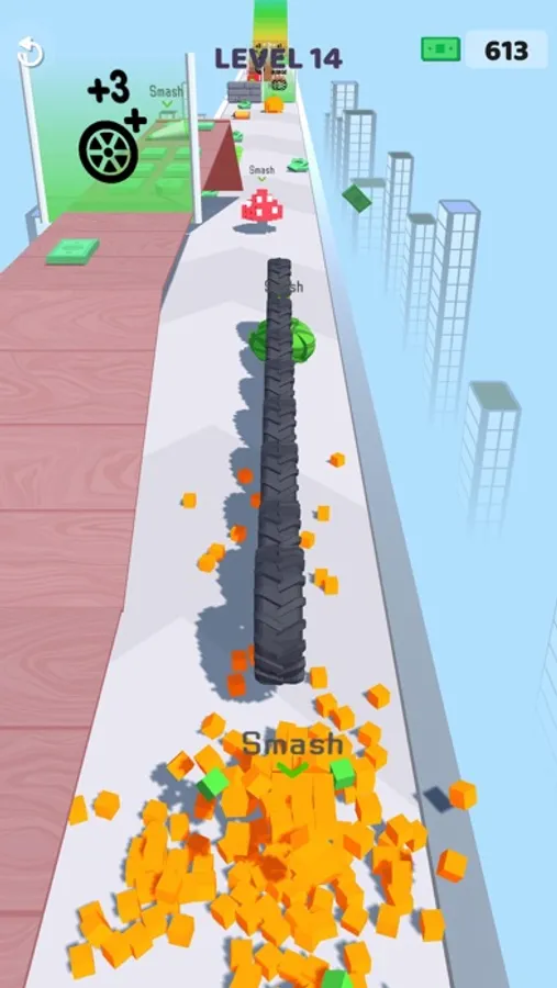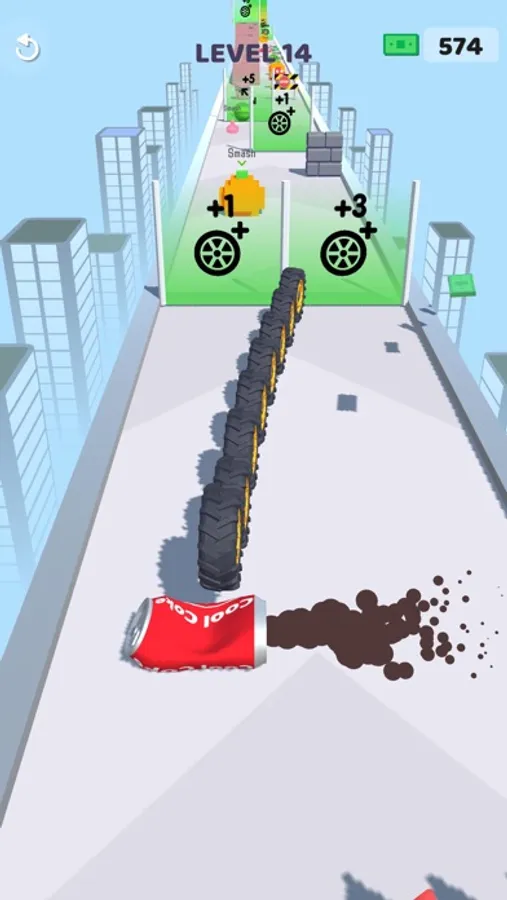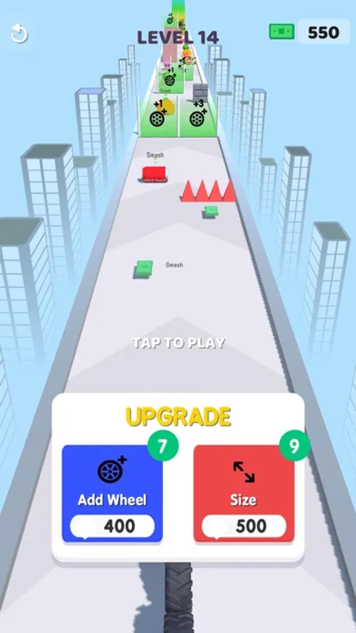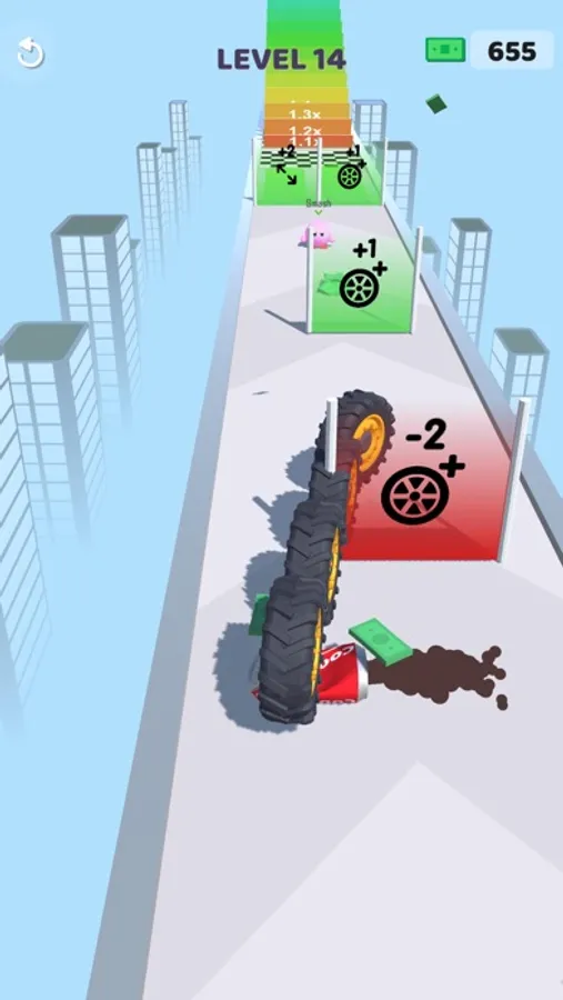 You can enlarge your tires and add new tires. Tires can be continuously improved. You can overcome the obstacles according to the power of your tires and reach the gifts at the end of the road.