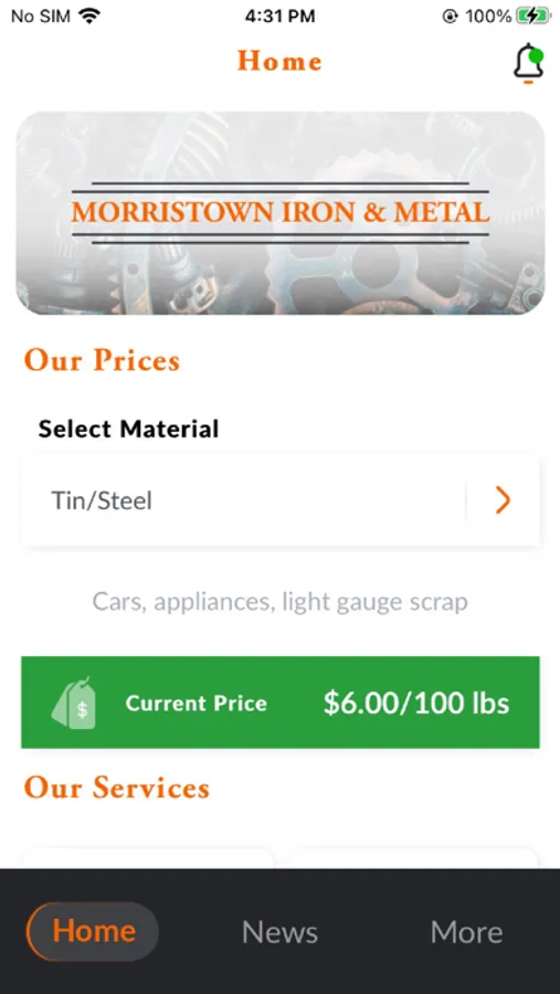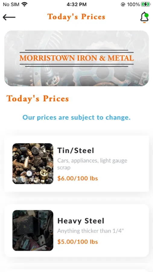 Scrap Metal prices are updated as needed due to market conditions. Features in the app include up to date pricing for all commodities. Container request forms for customers who need to schedule container service and a way to upload photos of your material for us to review and price.