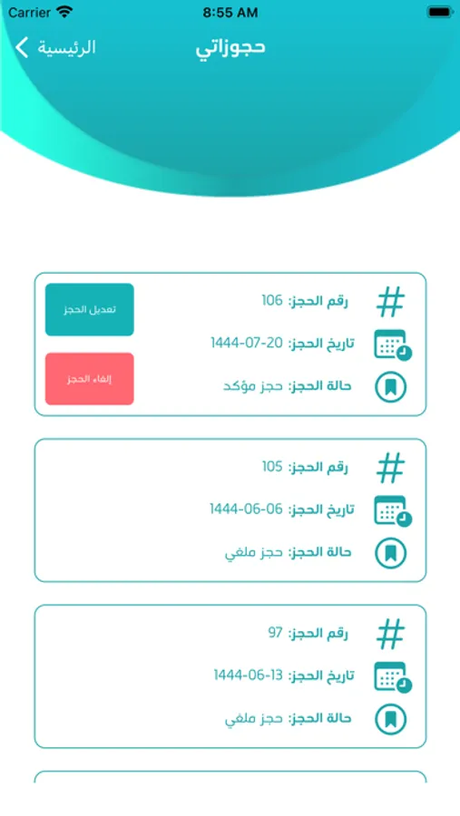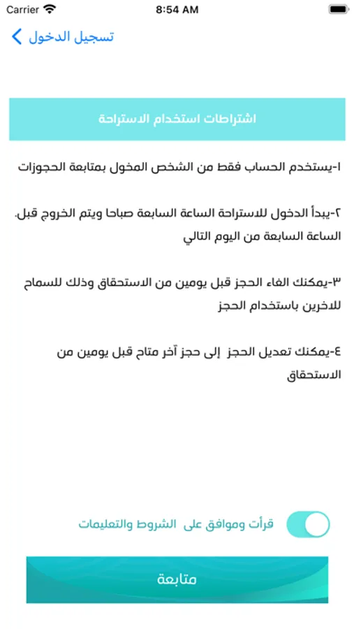 يتم من خلال التطبيق تنظيم عملية حجز المواعيد الإستراحة والتعديل عليها وإلغاؤها وكذلك استعراض الحجوزات السابقة والتواصل مع الدعم الفني وإستقبال الإشعارات ورسائل (sms) في حالات التغيير على الحجوزات وكذلك يمكن التطبيق تحديد مسار موقع الإستراحة.