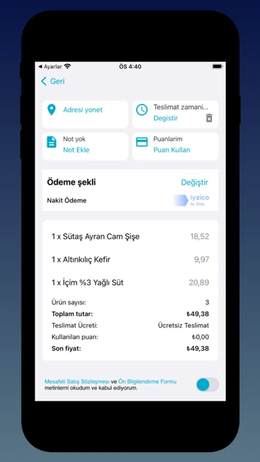 Uygulama üzerinden kolay ödeme yöntemiyle siparişinizi verebilirsiniz.