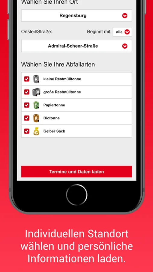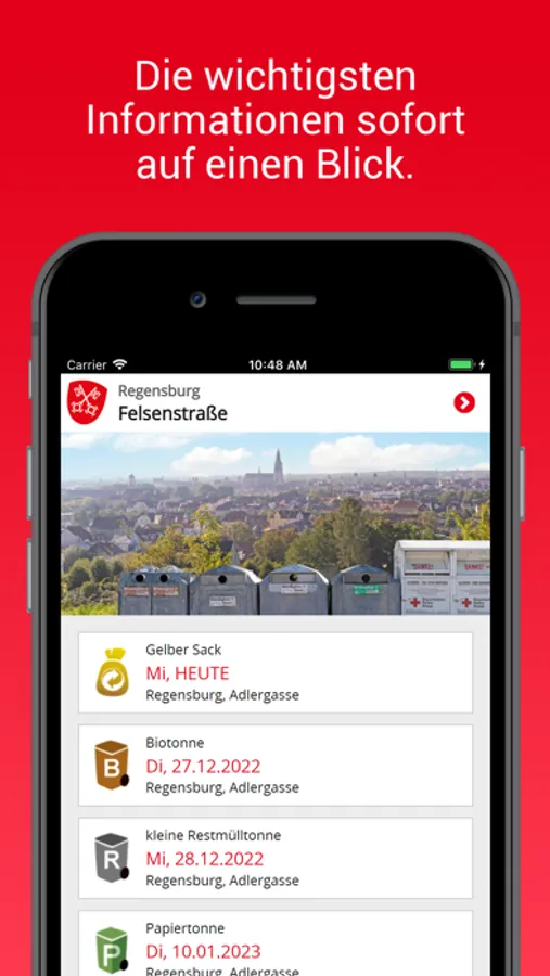 Die neue Abfall-App des Stadt Regensburg. Bleiben Sie immer informiert - über Abfuhrtermine, Annahmestellen, Problemmüll und vieles mehr.