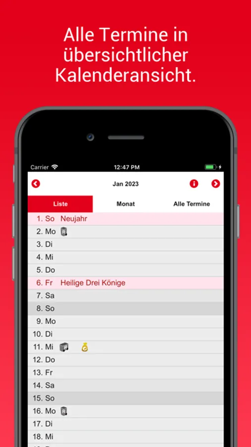 * Alle Termine in verschiedenen Kalenderansichten. Schafft Überblick in jeder Hinsicht!