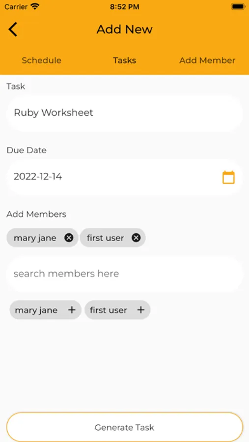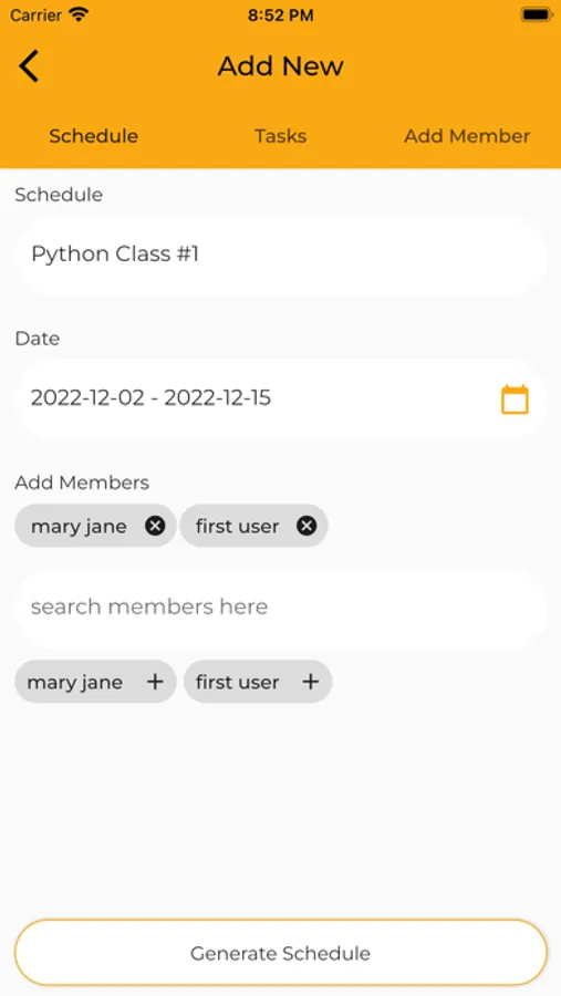 -Create and add as many members as you would like