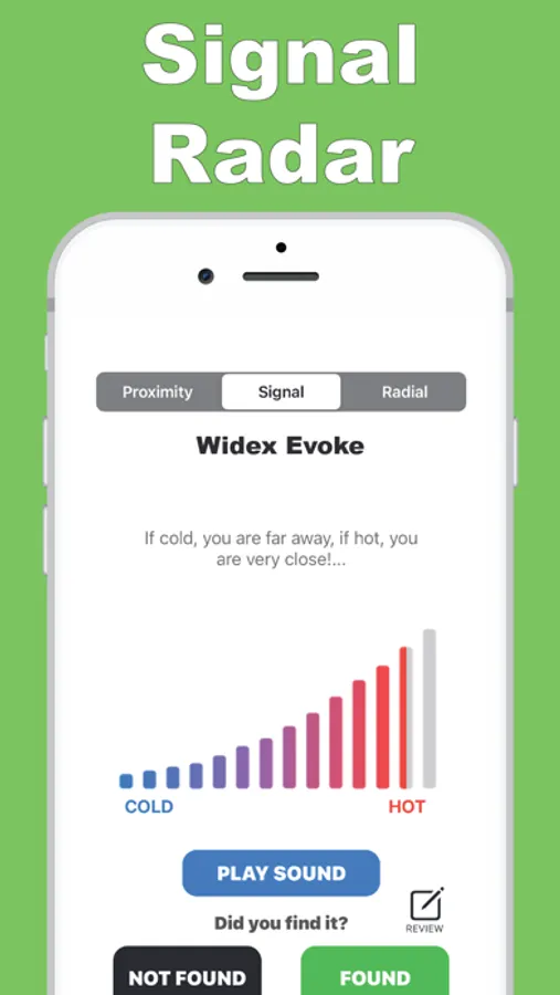 The closer you are to the your missing hearing aid, this signal radar goes from COLD to HOT. Cold means blue, red means hot.