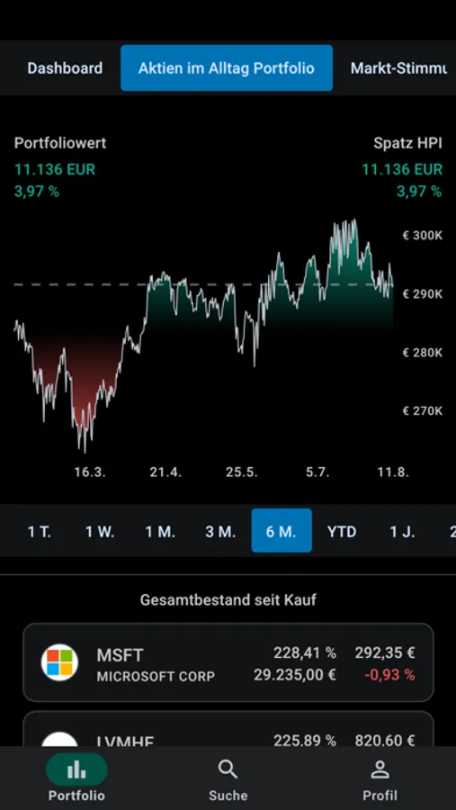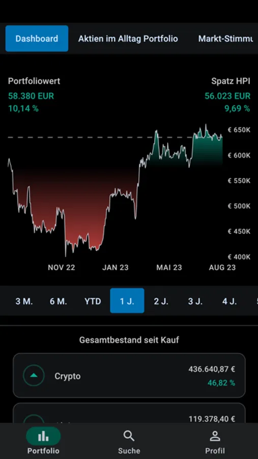 Alle deine Investitionen an einem Ort! Egal ob ETFs, Aktien, Fonds, Cryptos oder Forex. Tracke Depots und Wertanlagen mit der Spatz Webversion oder der iOS App. Tiefe Analysen ermöglichen es, Investitionen optimal zu verwalten und immer den Überblick zu bewahren.
